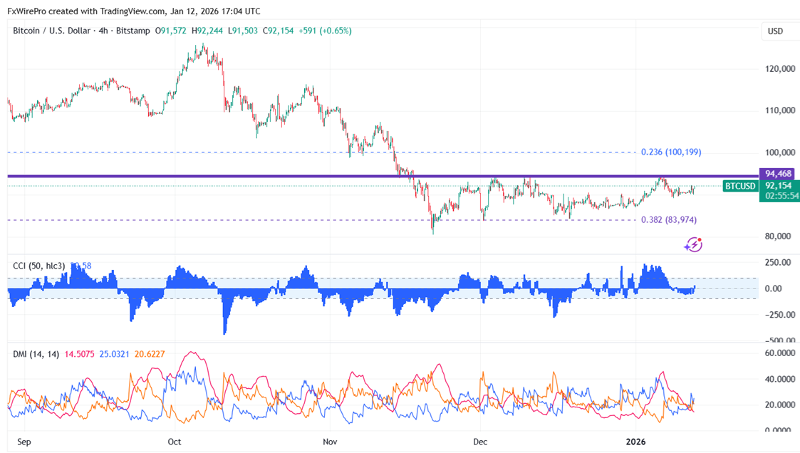 BTCUSD is trading in a narrow range with no proper direction. It hits an intraday high of $92392, and currently, it is about $92083.