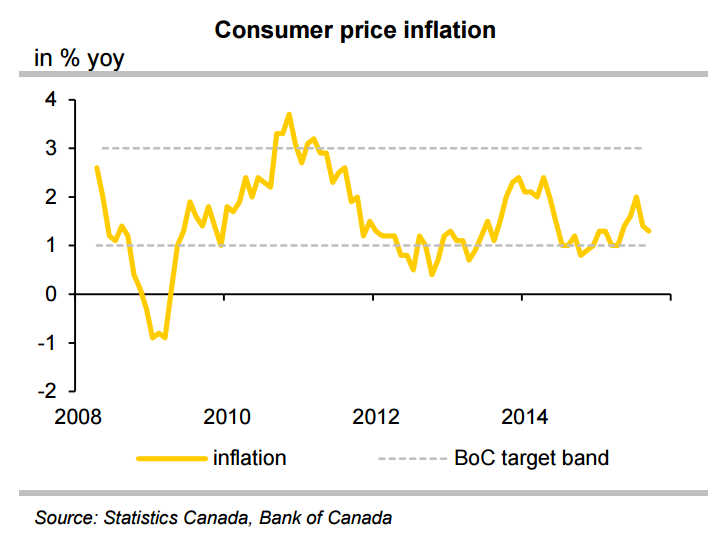 Recent pullback in merchandise exports and manufacturing sales volume data suggests Canada’s industrial sector lost momentum at the close of Q1. Poor data casts some doubt over whether the Canadian dollar’s depreciation did enough to boost growth. At 1.3%, inflation in Canada is currently within the central bank's target band. According to the BoC, the risks for the inflation outlook are balanced. That said, slowdown in economic growth in the coming quarters could change the situation very quickly, especially if this begins to push core inflation lower.