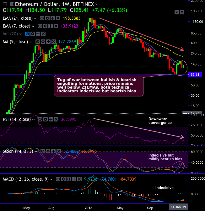 Well, overall, the event has created opportunities for both optimists and pessimists of this cryptocurrency, evidently, you could observe the price behavior from the above technical chart. Wherein, the stiff tug of war between bullish & bearish engulfing formations are traced out, while price remains well below 21EMAs despite this week’s upswings, both technical indicators have been indecisive.