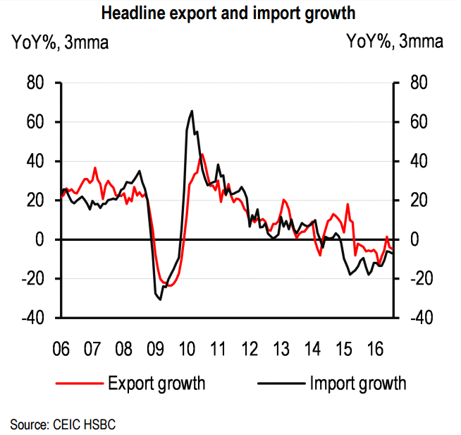 "Overall, the disappointing imports data today suggests that the underlying momentum of demand stabilization is still quite fragile. We expect the government to step up with multiple ways to lift domestic demand in the coming quarters, including more aggressive monetary easing, faster pace of fiscal expansion and more supply-side reforms." said HSBC Global in a research note.