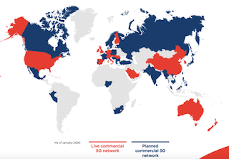 A map showing current and planned 5G networks globally. (GSMA Intelligence)