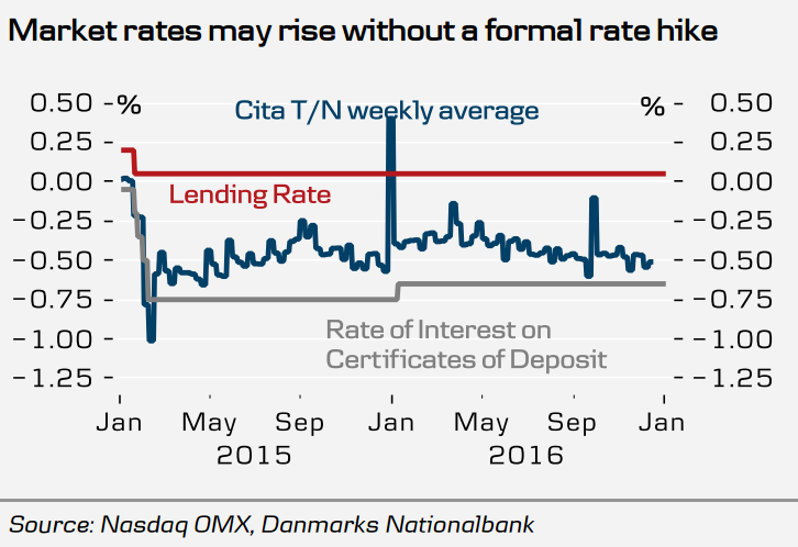 "While we do not expect de facto rate hikes from the ECB until 2019 at the earliest, DN may hike rates before that given that its lowest official interest rate is lower than the ECB’s lowest rate. Danish long yields have climbed on the back of higher yields in the US and this trend may well continue." adds Danske Bank.
