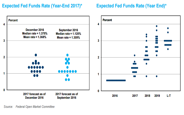 President-elect Donald Trump has pledged to cut taxes for corporations/individuals and to invest about $1 trillion on infrastructure. Trump's proposals are still uncertain, meaning that the Fed is unlikely to capture the full extent of their impact in its outlook right now. Recovery is likely to continue barring no major shock to the system. But the eventual performance of the economy is highly dependent on the still rather uncertain Trumponomics.