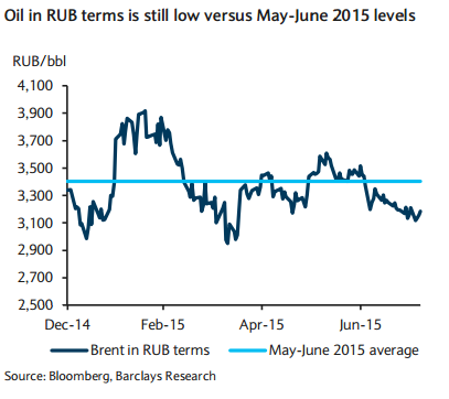 If oil prices remain at low levels, there is greater scope for the RUB to depreciate from current levels (eg, a further 5-10% depreciation of the RUB is needed to bring Brent in RUB terms back to levels prevalent in May-June 2015). The CBR may attempt to smooth these FX moves and avoid overshooting by tightening monetary conditions, either by offering more in FX swaps or decreasing liquidity in its RUB auctions. The risks are that the CBR will cut less than the forecasts and more in line with the market.