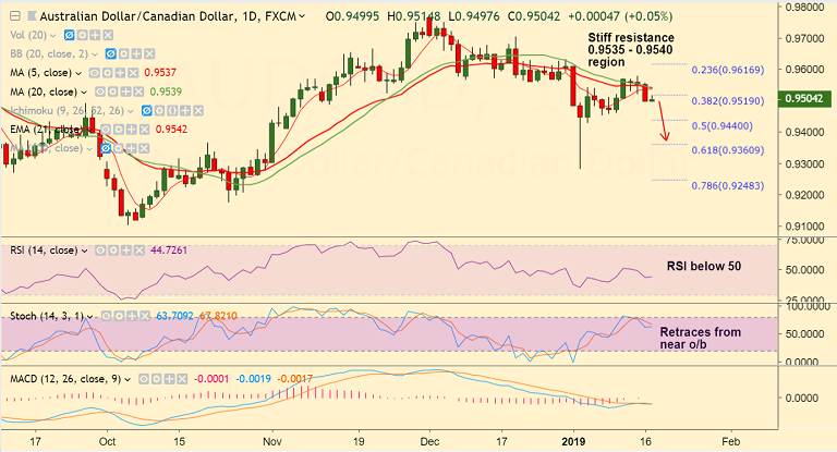 Resistance levels - 0.9519 (38.2% Fib), 0.9540 (20-DMA), 0.9583 (200-DMA)