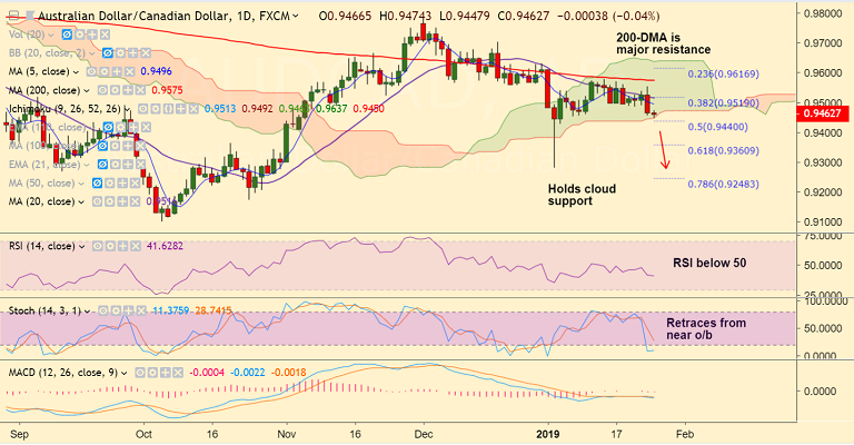 - 5-DMA is immediate resistance at 0.9497. Decisive breakout above 200-DMA negates bearish bias.