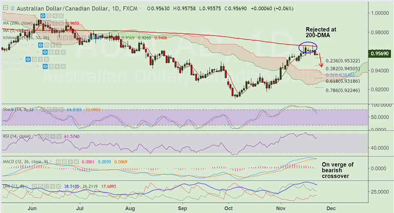 - Upside has been rejected at 200-DMA and the pair has slipped below 5-DMA.