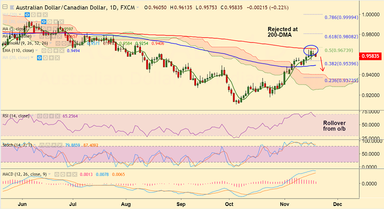 - The pair has been rejected at 200-DMA and we see any upside only on decisivebreak above.