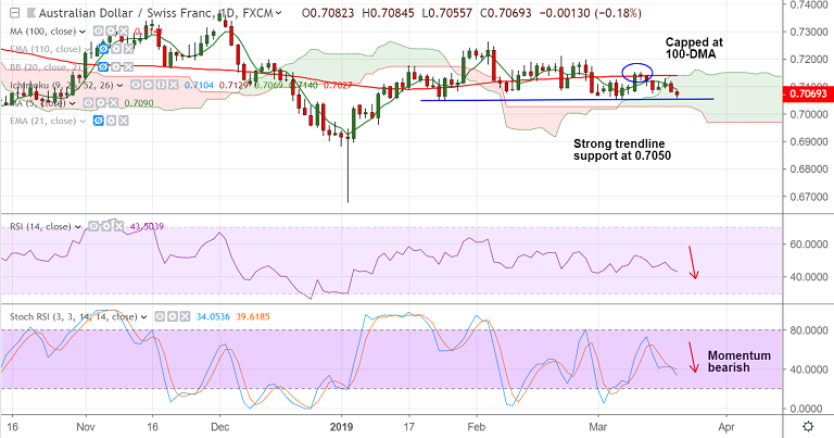 - On the upside, immediate resistance is seen at 5-DMA at 0.7090. Break above 100-DMA could see short-term bullishness.