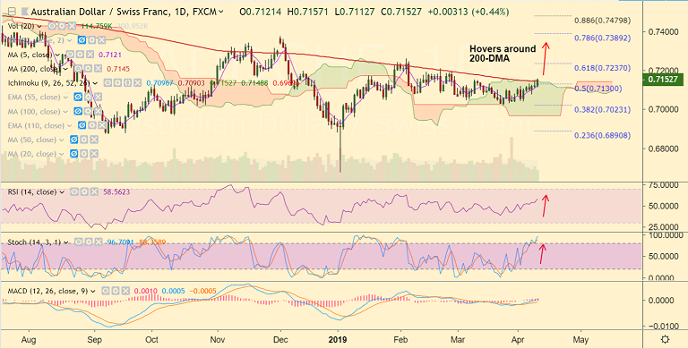Support levels - 0.7145 (200-DMA), 0.7123 (5-DMA), 0.7078 (Apr 8 low)