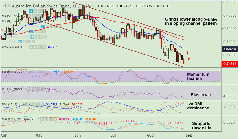 - AUD/CHF extends grind lower along 5-DMA, hits 2-year lows at 0.7130.