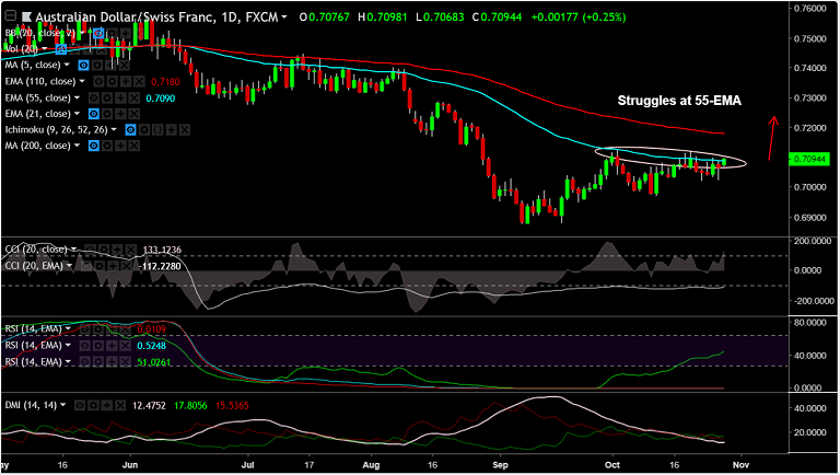 - AUD/CHF has been rejected at 55-EMA several times, we see further upside only on break above.