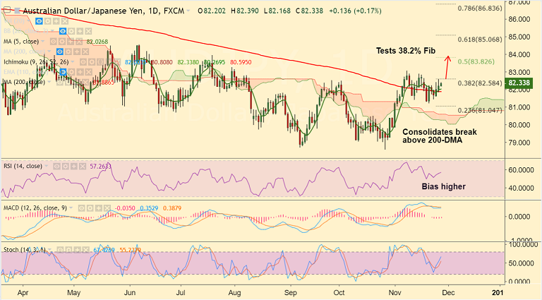 - The pair is extending consolidation above 200-DMA and intraday bias is higher.