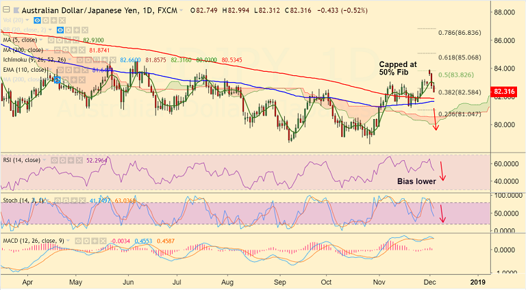 - Recovery was capped at 5-DMA, pair is on track to test 200-DMA at 81.87. Violation there could see further weakness.
