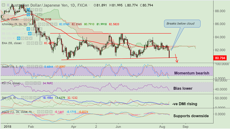 - The pair has broken below daily cloud and trades with a strong bearish bias.