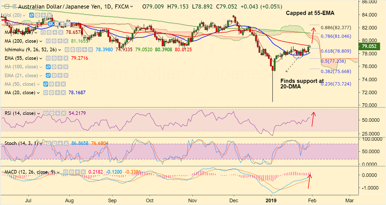 Recommendation: Watch out for break above 55-EMA to go long, target 79.90/ 80.15