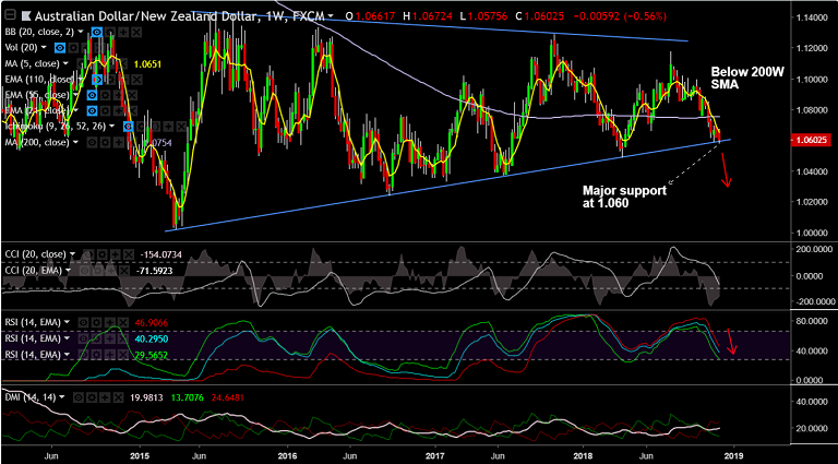 - We see little support till 1.0488 (Apr 2018 low). Further weakness can drag the pair till 1.0370 (Jun 2017 low).