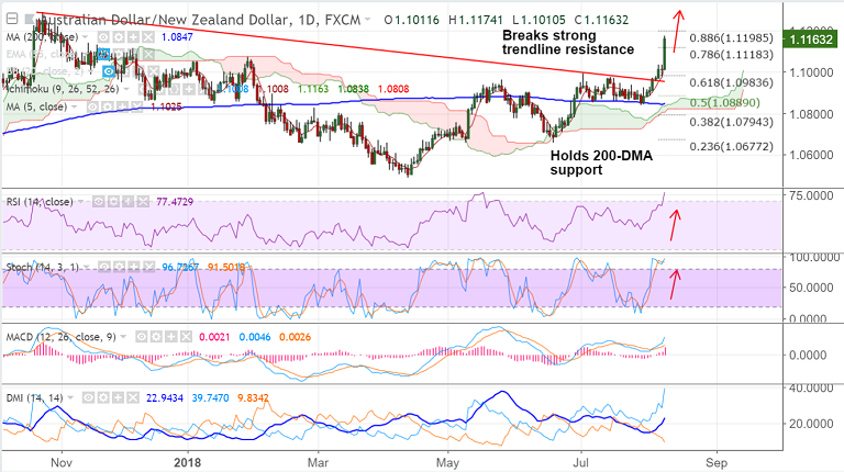 - AUD/NZD spikes past 78.6% Fib to hit 9-month highs at 1.1174, bias still higher.