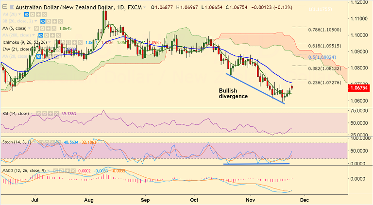 - AUD/NZD trades shy of 21-EMA, we see scope for further upside.