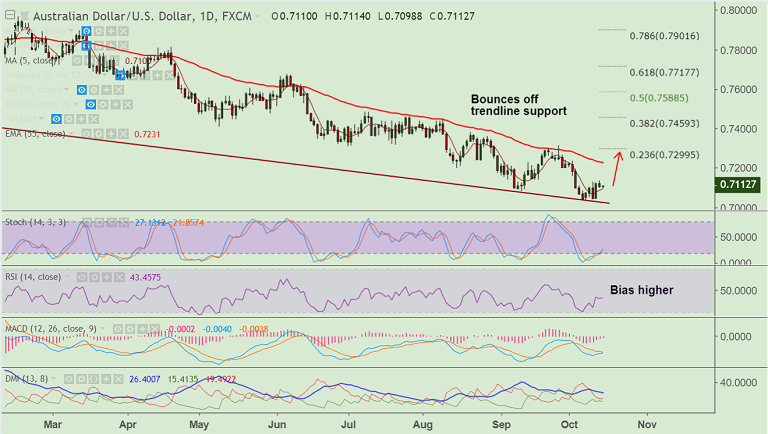 Support levels - 0.7100 (5-DMA), 0.7085 (Sept 11 low), 0.7040 (Oct 8 low)
