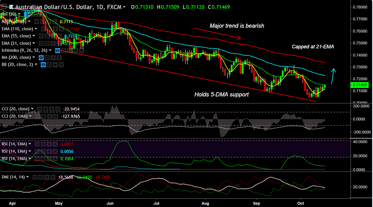 Support levels - 0.7112 (5-DMA), 0.7085 (Sept 11 low), 0.7040 (Oct 8 low)