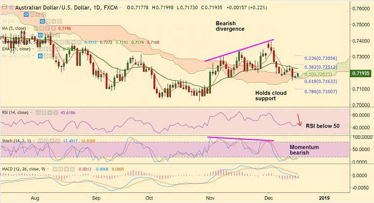 - 50-DMA is immediate resistance at 0.7195 and break above could see gains till 20-DMA at 0.7245.
