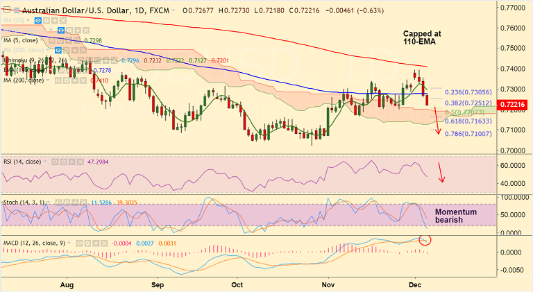 Recommendation: Good to go short on rallies, SL: 0.7280, TP: 0.72/ 0.7165/ 0.71