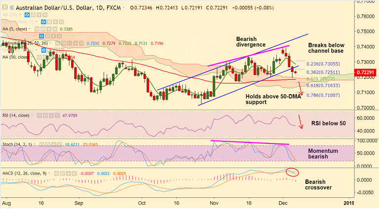 - The pair was rejected at 55-EMA at 0.7227, decisive break above could see some upside.