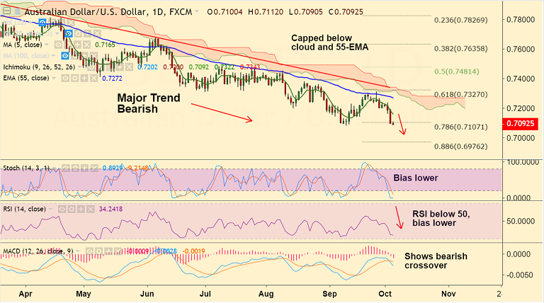 Resistance levels - 0.7165 (5-DMA), 0.7205 (21-EMA), 0.7272 (55-EMA)