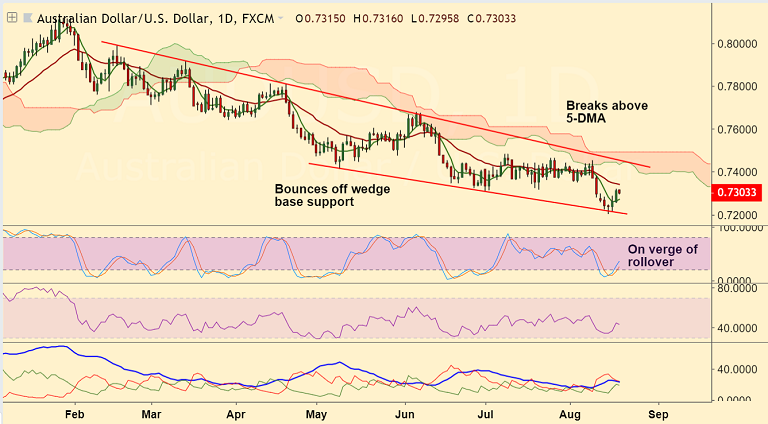Support levels - 0.7272 (5-DMA), 0.72 (Wedge Base), 0.7160 (Dec 2016 low), 0.7145 (May 2016 low)