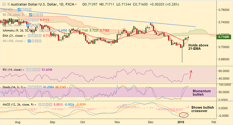 Support levels - 0.7120 (21-EMA), 0.7113 (5-DMA), 0.7021 (Oct 26 low)