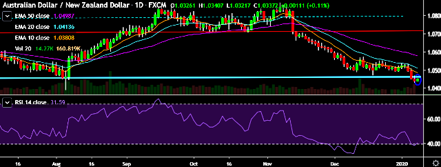 - AUD/NZD is currently trading around 1.0338 marks.