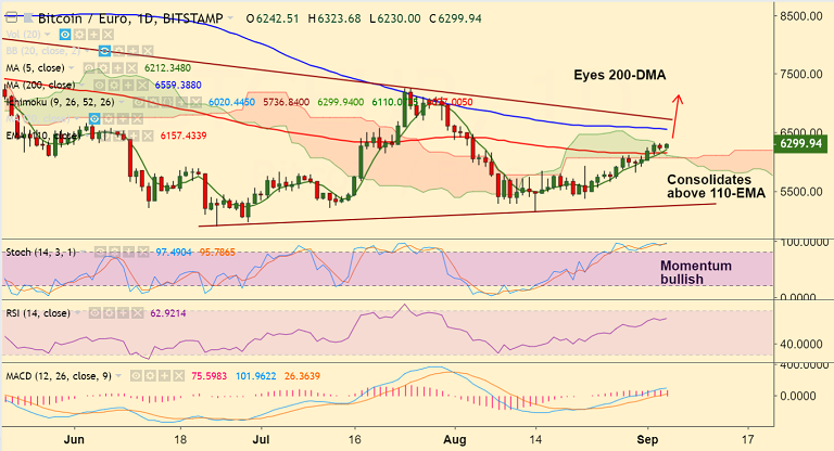 - The pair has edged above 6300 mark, and further bullish momentum is likely to see test of 200-DMA.