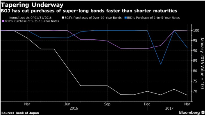 “Given the BOJ is committed to managing the yield curve, any upward pressure on yields could lead to an increase in bond purchases in the future,” said Yusuke Ikawa, Japan strategist at BNP Paribas SA in Tokyo. “If it maintains its zero percent target, the BOJ faces the risk of one day having to buy more than 80 trillion yen of bonds a year.”