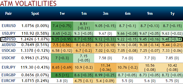 With rising IVs above 9.12% for 3 months expiries and a tad below 9.5% for 1y tenors having significance in economic drivers that propels this currency pair to anywhere.