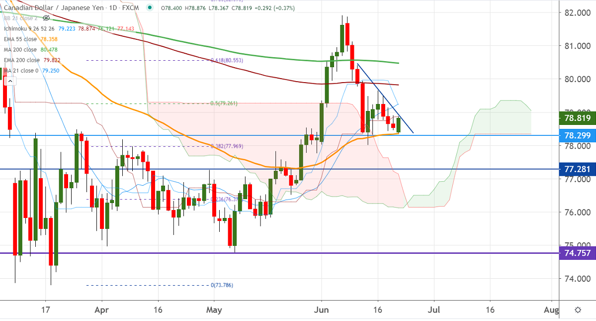 The near-term support is around 78, an indicative break below targets 78.30/78. Significant selling can be seen only below 78.
