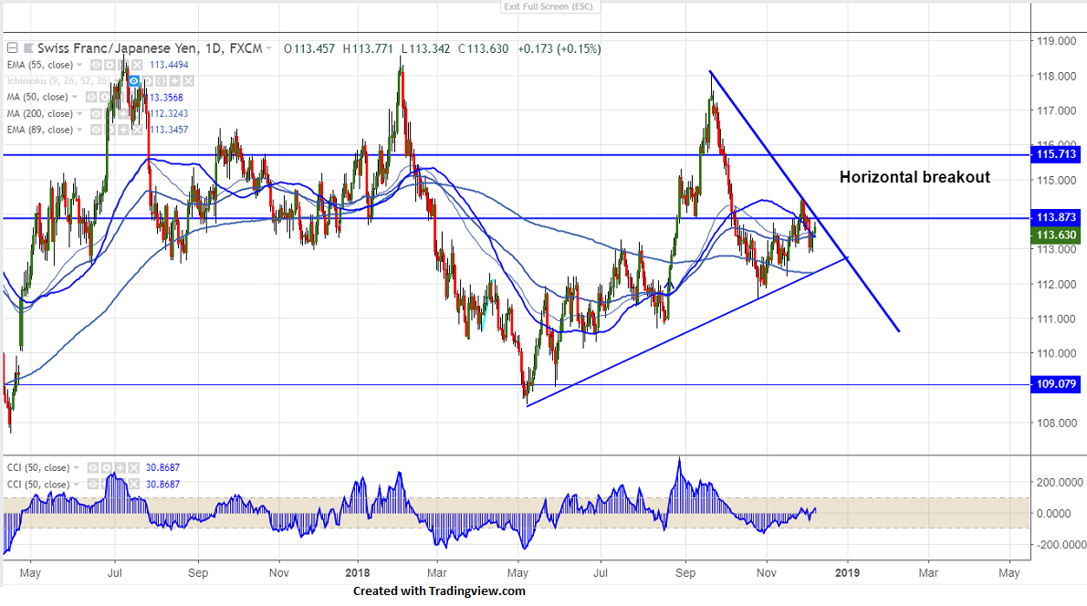 CHFJPY is trading high for second consecutive day and pair jumped nearly 90 pips from low of 112.89 made yesterday. The jump was mainly due to broad based buying in Swiss franc. Global stock market selling and declining US bond yield supporting Swiss Franc. The pair hits high of 113.77 and is currently trading around 113.63.