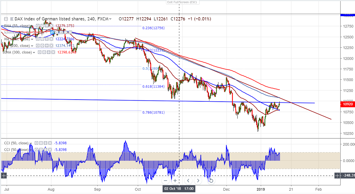 The index is facing strong resistance around 11000 and any break above targets 11592/11869.