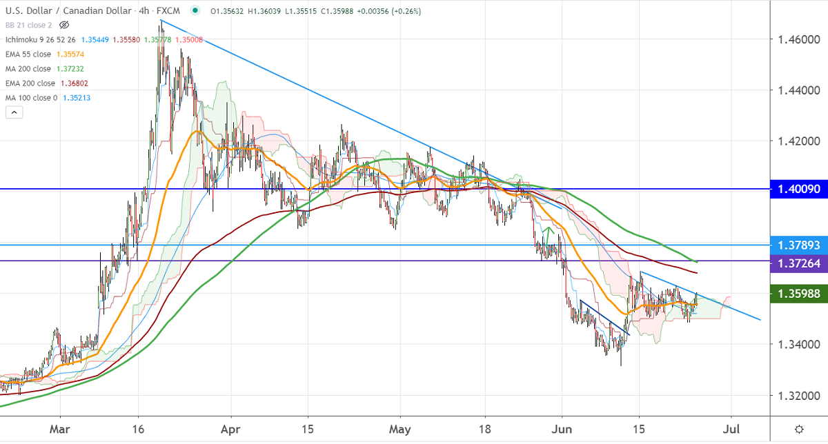 USDCAD recovered more than 50 pips on broad-based US dollar buying. The demand for the US dollar increased after the news that the US to impose tariffs up to $3.1 billion on EU and UK products. The pair hits an intraday high of 1.35935 and is currently trading around 1.35932.
