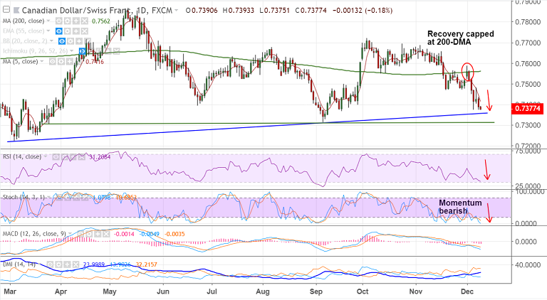 FxWirePro: USD/CAD recovers slightly but trend is still bearish