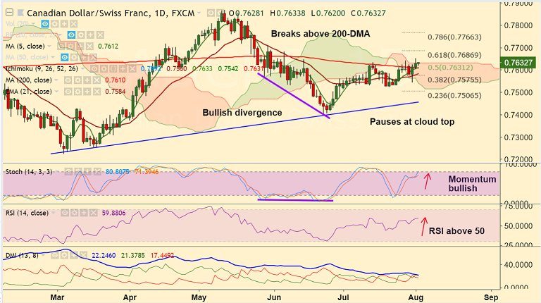 - The pair has closed above 200-DMA and break above cloud signals upside continuation.