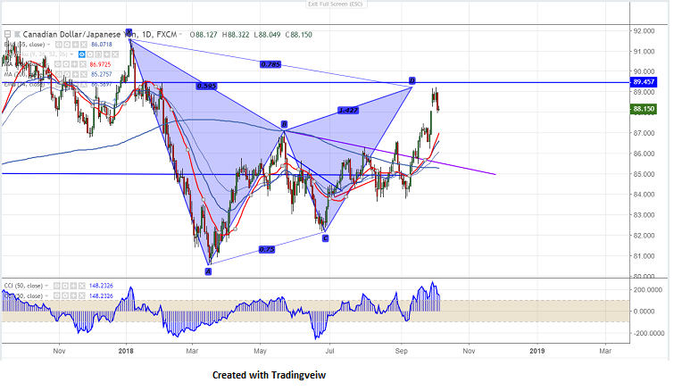 As per our analysis CAD/JPY has halted its one month of continuous bullishness after hitting high of 89.21 level. The pair has formed Bearish Gartley pattern and any break above 91.58 confirms bullish continuation. It hits low of 87.94 and shown a minor recovery.