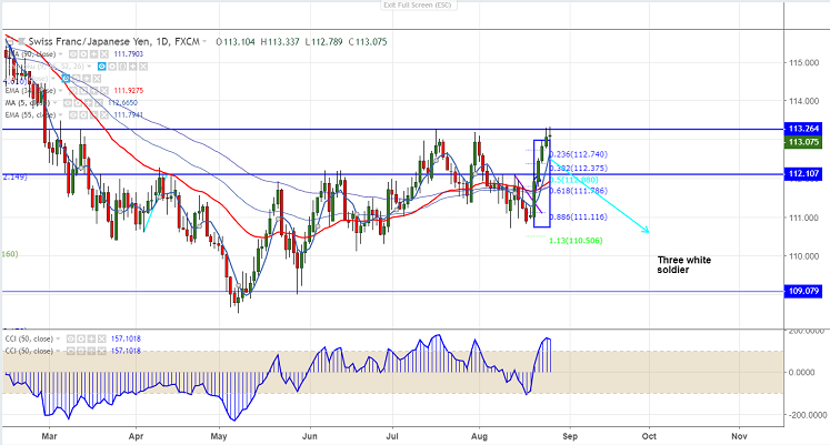 CHF/JPY is continuously trading for past 4 trading session and jumped more than 250 pips from the low. It hits high of 113.33 at the time of writing. It is currently trading around 113.07.