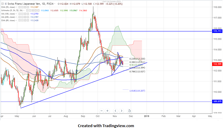 On the lower side, near term support is around 112.45 (100- day MA) and any break below targets 112/111.55.