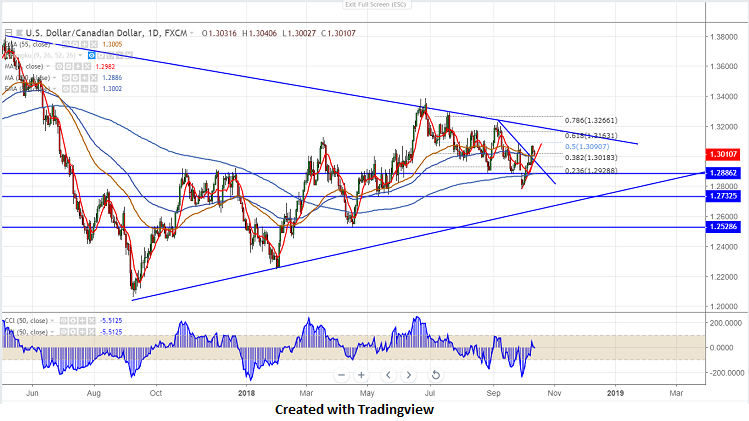 USD/CAD has halted its eight day of bullishness and shown a minor decline of more than 50 pips from the high of 1.30717. The slight decline in US yield and dip in crude oil price has supported Canadian dollar.It is currently around 1.30073.