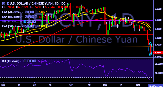 We prefer to take short position on USD/CNY around 6.77, stop loss at 6.80 and target of 6.7050.