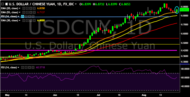 We prefer to take long position on USD/CNY around 6.8650, stop loss at 6.83 and target of 6.8938.