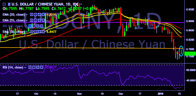 We prefer to take short position on USD/CNY only below 6.7590, stop loss at 6.7800 and target of 6.7050.