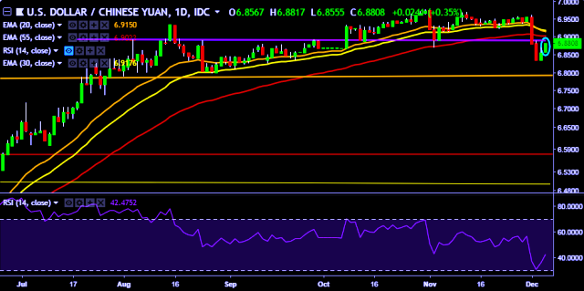 We prefer to take long position on USD/CNY around 6.8750, stop loss at 8.8348 and target of 6.96.