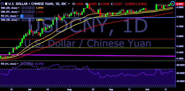 We prefer to take long position on USD/CNY only above 6.9420, stop loss at 6.92 and target of 6.9620.